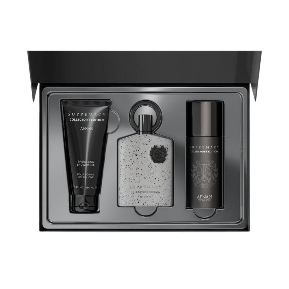 Afnan Supremacy Collector Edition Set je luksuzno poklon pakovanje koje donosi prepoznatljiv i snažan muški miris u kombinaciji sa proizvodima za kompletnu njegu tijela. Ovaj ekskluzivni set omogućava potpun mirisni ritual jer parfem, dezodorans i gel za tuširanje zajedno pojačavaju i produžavaju trajanje mirisa. Supremacy kolekcija poznata je po elegantnim i snažnim kompozicijama koje spajaju svježe, voćne i drvenaste akorde u sofisticiran mirisni potpis. Miris je moderan, intenzivan i dugotrajan, idealan za muškarce koji žele ostaviti snažan utisak. Elegantno pakovanje dodatno naglašava premium karakter ovog seta i čini ga odličnim izborom za poklon.