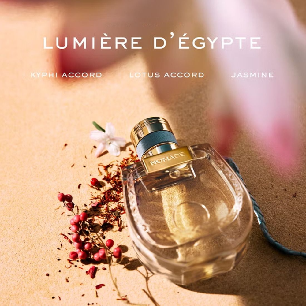 Chloé Nomade Lumière d’Égypte EDP za žene je luksuzan, topao i mističan miris inspirisan sunčevim zracima koji obasjavaju egipatsku pustinju. Ova elegantna kompozicija spaja cvjetne i jantarne tonove u savršenoj harmoniji. Otvara se svježim notama cvijeta naranče, u srcu se ističe moćni cvijet tiare, dok baza od vanilije i hrastove mahovine pruža dubinu i toplinu. Rezultat je sofisticiran miris koji odiše senzualnošću i svjetlošću.