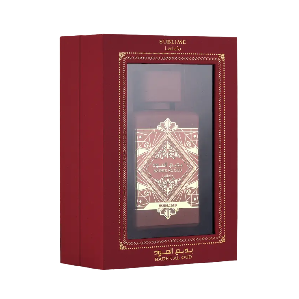 Bade'e Al Oud Sublime od Lattafa Perfumes je drveni aromatični miris za žene i muškarce. Ovo je novi parfem. Bade'e Al Oud Sublime je predstavljen 2023. Gornje note su Jabuka, Liči i Ruža; srednje note su Šljiva i jasmin; bazne note su Mahovina, Vanilija i pačuli.