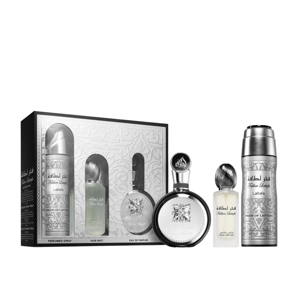 Lattafa Fakhar Man Set donosi snažno, moderno i elegantno mirisno iskustvo kroz tri usklađena proizvoda. Set uključuje EDP 100 ml, parfemski sprej 200 ml i osvježivač zraka 300 ml, idealan za muškarce koji vole svjež, samouvjeren i dugotrajan mirisni potpis.