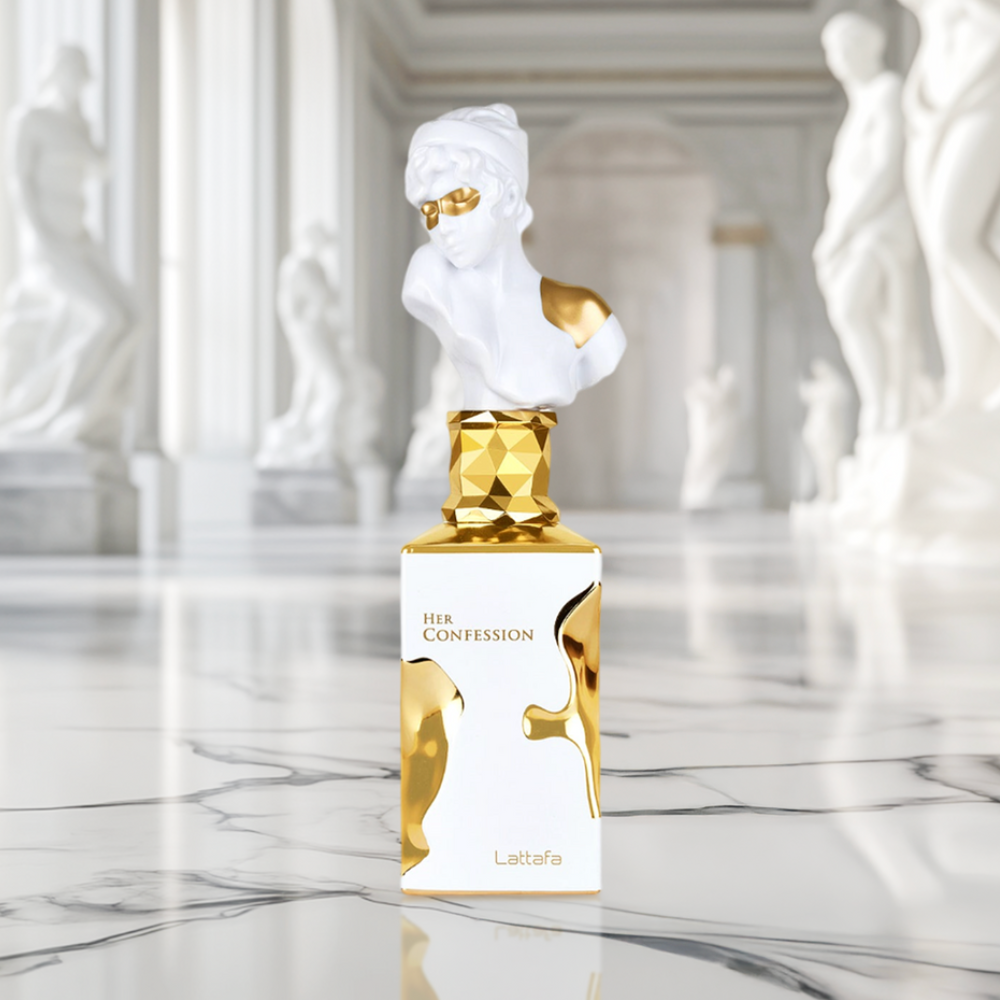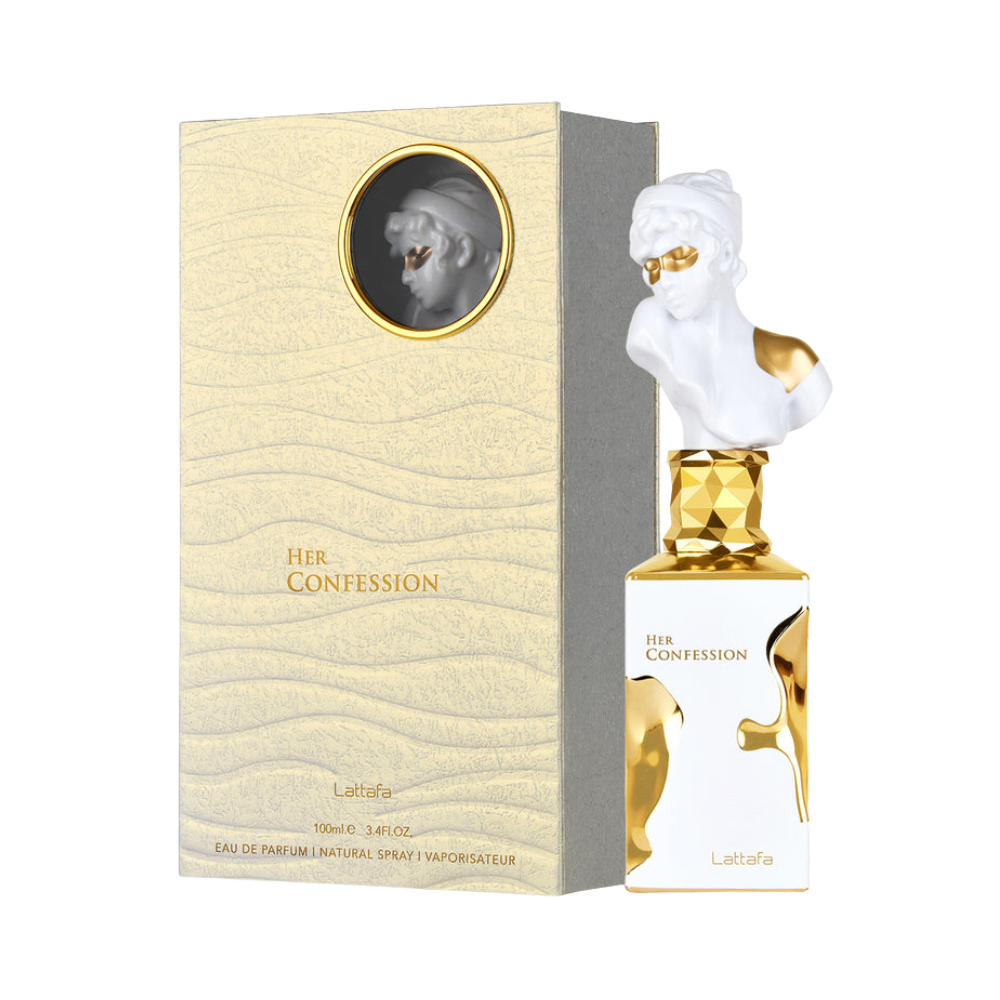 Her Confession od Lattafa Perfumes je miris za žene. Ovo je novi parfem. Her Confession je predstavljen 2024. Gornje note su Mystikal i Cimet; srednje note su Tuberoza, jasmin, Tamjan i Mahonial; bazne note su Vanilija, Mahune Tonke i mošus.