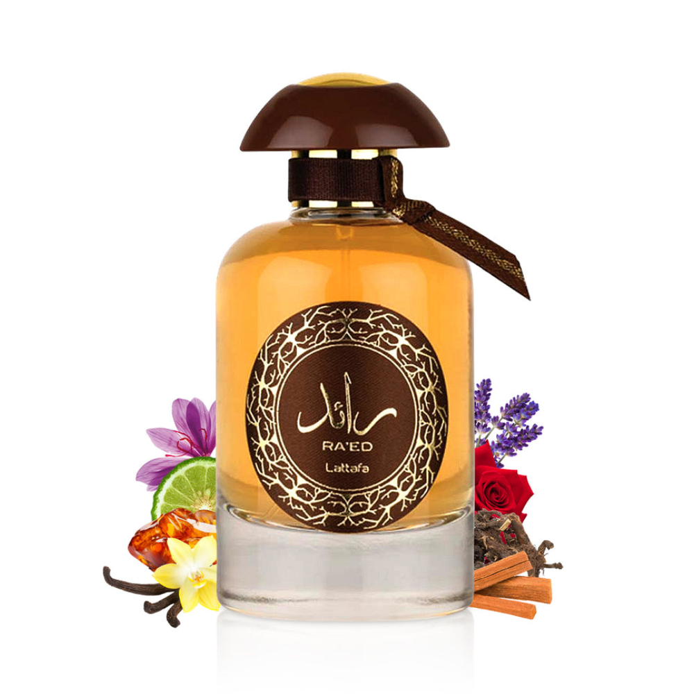 Parfem Ra'ed Oud od Lattafa Perfumes je drveni, orijentalni miris za muškarce i žene predstavljen 2021. godine. Gornje note koje otvaraju ovaj parfem su začinski šafran, citrusni bergamot i umirujuća lavanda. Kada parfem evoluira, na scenu stupaju mirisna ruža, tajanstveni tamjan i ulje od šilja s mirisom koji podsjeća na dimljenu kožu. U baznim notama se provlači već spomenuta koža ali sada u društvu ouda i sandalovine koji daju drvenast miris dok amber pruža slatkoću.