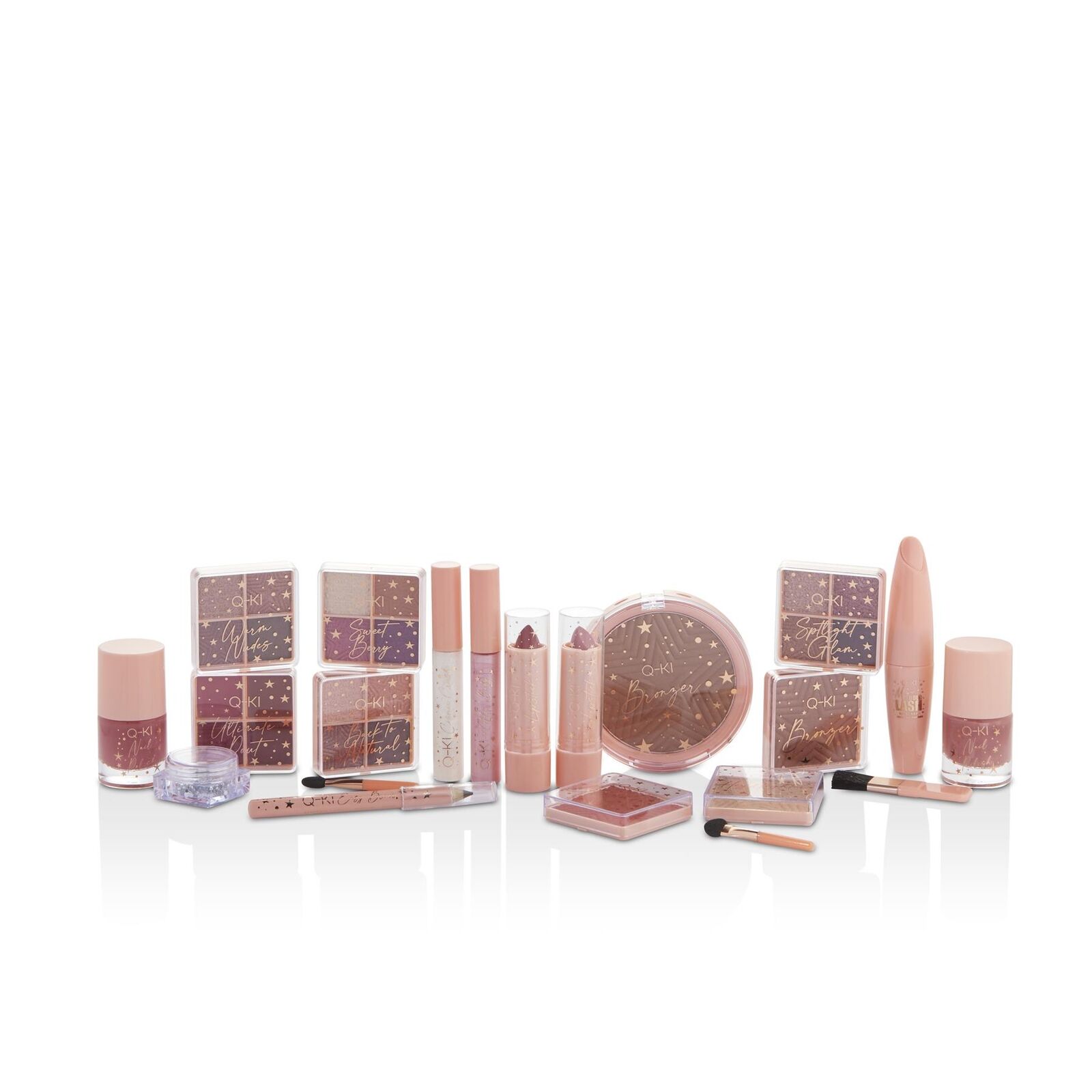 Ovaj set sadrži: Sunkissed Matte Bronzer veličine 12 g Lak za nokte 2 x 8 ml Nail Gem Pot 0,5g - šljokice za nokte Ruž za usne 2 x 3,3g Ruž 2,2g Olovka za obrve 0,8g Sjenilo za oči 4 x 4,2g Rumenilo 4g Bronzer 4g Highlighter 4g Tekući highlighter 4 ml Holografski sjaj za usne 4ml Maskara 5,5 ml Aplikatori x 3
