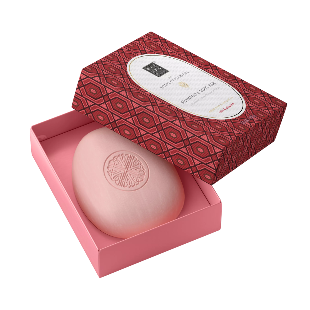 Rituals The Ritual of Ayurveda čvrsti šampon i sapun za tijelo pruža praktičnu i luksuznu njegu u jednom proizvodu. Ova 2-u-1 formula nježno čisti kosu i kožu, ostavljajući ih svježim, mekim i njegovanim. Obogaćen tradicionalnim ayurvedskim sastojcima, uključujući indijsku ružu i bademovo ulje, pruža dubinsku njegu i prirodan balans. Čvrsta forma je idealna za putovanja i ekološki osviještenu rutinu, bez nepotrebne plastike. Nakon upotrebe, koža i kosa ostaju nježno mirisni i osvježeni.