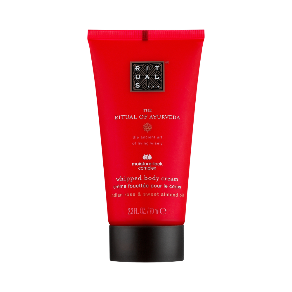 Rituals The Ritual of Ayurveda Whipped Body Cream je luksuzna krema za tijelo sa laganom, pjenastom teksturom koja dubinski hrani i hidrira kožu. Inspirisana drevnom Ayurvedskom tradicijom, ova bogata formula pomaže obnoviti ravnotežu tijela i uma kroz nježan i umirujući miris. Krema sadrži kombinaciju indijske ruže i slatkog bademovog ulja koji njeguju kožu, ostavljajući je mekom, glatkom i svilenkastom. Njena lagana whipped tekstura brzo se upija i pruža dugotrajan osjećaj hidratacije. Idealan je izbor za svakodnevnu njegu kože i opuštajući ritual nakon tuširanja.