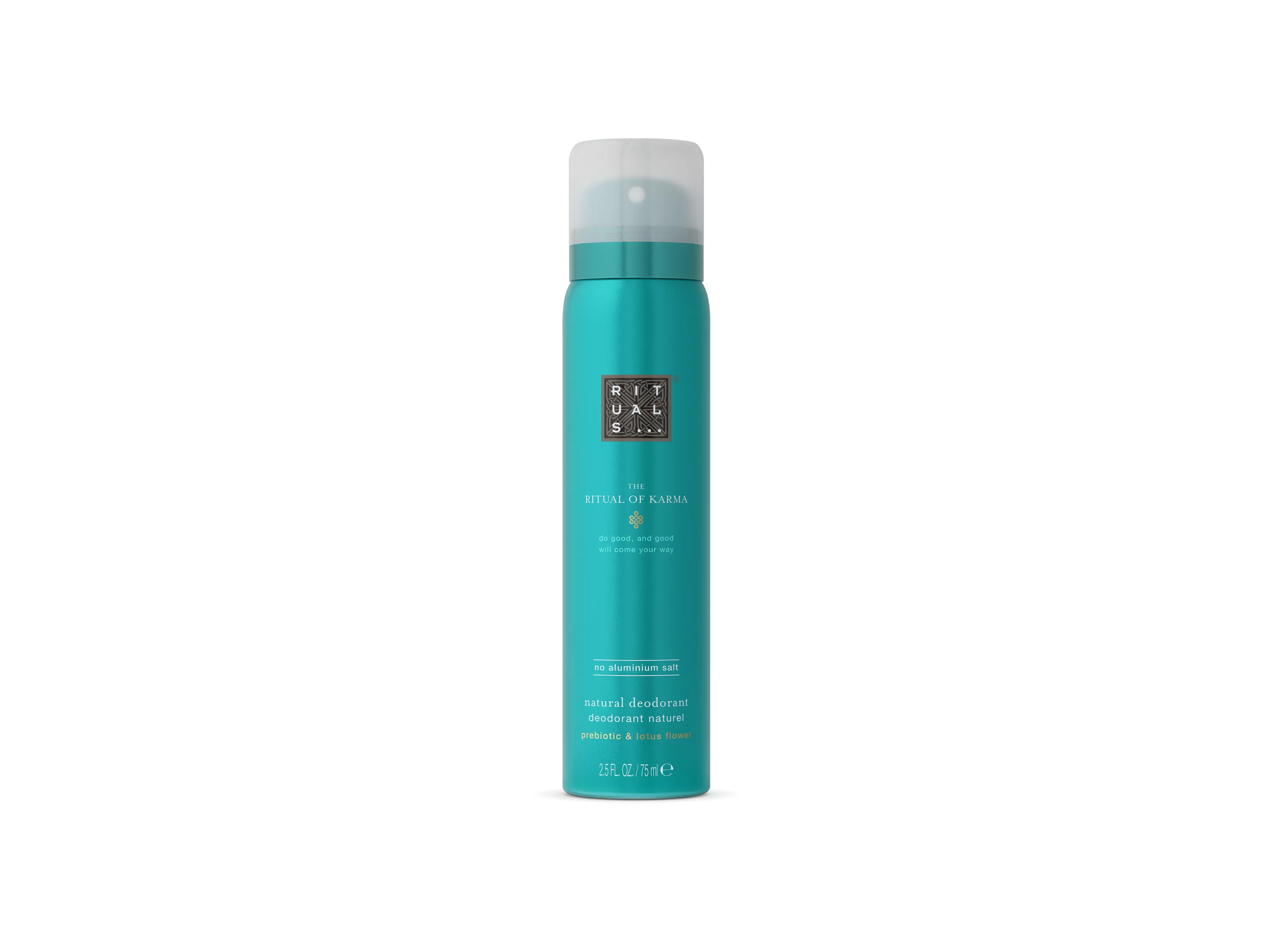 Rituals The Ritual of Karma Natural Deodorant 75 ml je prirodni dezodorans koji pruža dugotrajnu svježinu i pouzdanu zaštitu, uz nježnu njegu kože. Formula bez aluminijskih soli je blaga, ali efikasna, brzo se suši i ne ostavlja tragove na odjeći. Oplemenjen je osvježavajućim mirisom bijelog čaja i lotosa, koji donosi osjećaj čistoće, balansa i pozitivne energije tokom cijelog dana. Idealan je za svakodnevnu upotrebu i pogodan za osjetljivu kožu. Lagan i praktičan format čini ga savršenim i za putovanja.