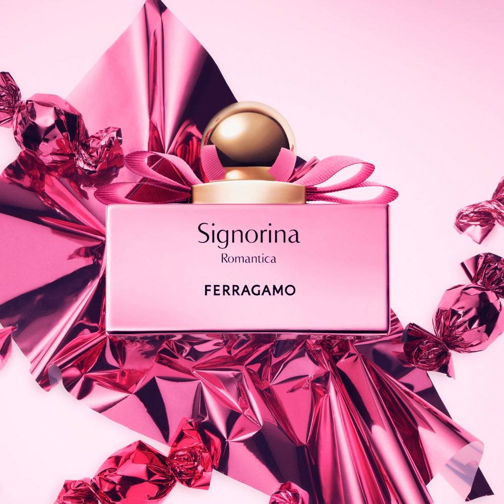 Salvatore Ferragamo Signorina Romantica Eau de Parfum je nježan, romantičan i elegantan ženski miris koji slavi ljubav, emocije i profinjenu ženstvenost. Otvaranje donosi blage voćne i svježe note koje stvaraju vedar i lagan prvi dojam. U srcu se razvijaju raskošni cvjetni akordi ruže i božura koji parfemu daju mekoću, toplinu i romantičan karakter. Baza je nježna i sofisticirana, s notama bijelog mošusa i blagih drvenastih tonova koje ostavljaju suptilan, ali dugotrajan trag na koži. Signorina Romantica odiše lakoćom, elegancijom i bezvremenskom ženstvenošću. Idealan je za svakodnevno nošenje, ali i za posebne, romantične trenutke. Miris je lagan, ugodan i izuzetno nosiv.