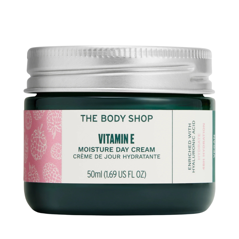 The Body Shop Vitamin E Moisture Day Cream 50 ml je lagana i hidratantna dnevna krema koja pruža intenzivnu njegu i zaštitu kože tokom cijelog dana. Obogaćena vitaminom E i hidratantnim sastojcima, pomaže u očuvanju prirodne vlažnosti kože, čineći je mekanom, glatkom i svježom. Njena nježna tekstura se lahko upija bez masnog osjećaja, što je čini idealnom kao baza za šminku. Pogodna je za sve tipove kože, posebno za normalnu do suhu kožu.