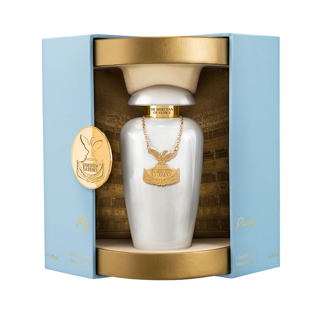 The Merchant of Venice La Fenice My Pearls EDP Concentree je izuzetno luksuzan i sofisticiran ženski parfem visoke koncentracije, inspirisan elegancijom opere La Fenice i bezvremenskom ljepotom bisera. Miris se otvara profinjenim i svjetlucavim notama koje odmah ostavljaju osjećaj čistoće i luksuza. U srcu se razvijaju bogati cvjetni akordi koji parfemu daju ženstvenost, dubinu i umjetnički karakter. Baza je topla, baršunasta i dugotrajna, s mošusnim i blagim ambernim tonovima koji ostavljaju elegantan, senzualan i izuzetno postojan trag na koži. My Pearls EDP Concentree odiše profinjenošću, tišinom luksuza i savršenim balansom. Namijenjen je ženama koje cijene niche parfeme i žele poseban, ekskluzivan mirisni potpis. Idealan je za večernje prilike i posebne trenutke.