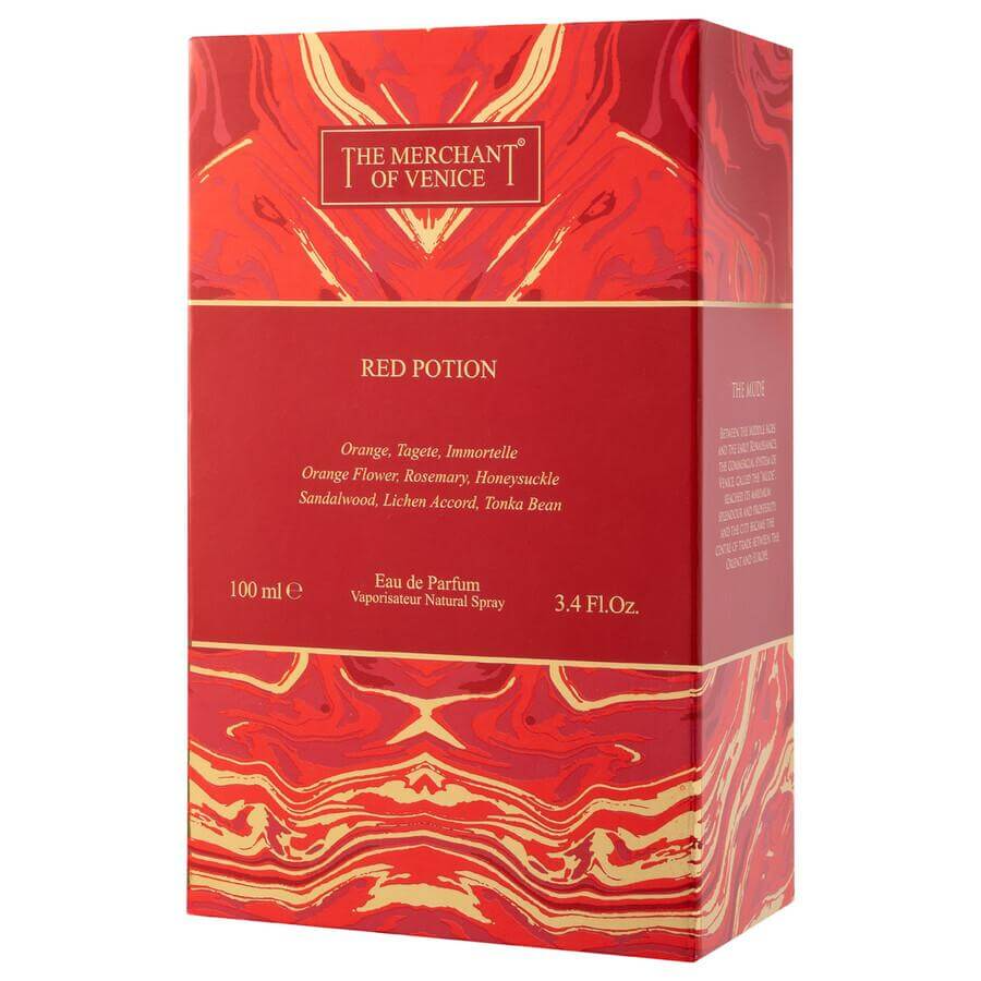 The Merchant of Venice Red Potion EDP je zavodljiv i intenzivan niche miris koji odiše strašću, energijom i luksuzom. Ova bogata kompozicija spaja sočne voćne akorde sa toplim začinskim i ambrastim notama, stvarajući snažan i upečatljiv mirisni potpis. Red Potion je moderan, senzualan i izražajan, idealan za večernje prilike i posebne događaje kada želite ostaviti nezaboravan utisak. Miris je dugotrajan, sa izraženom projekcijom i toplom, zavodljivom završnicom. Prepoznatljiva Murano bočica u crvenim tonovima dodatno naglašava ekskluzivnost i dramatičnost parfema.